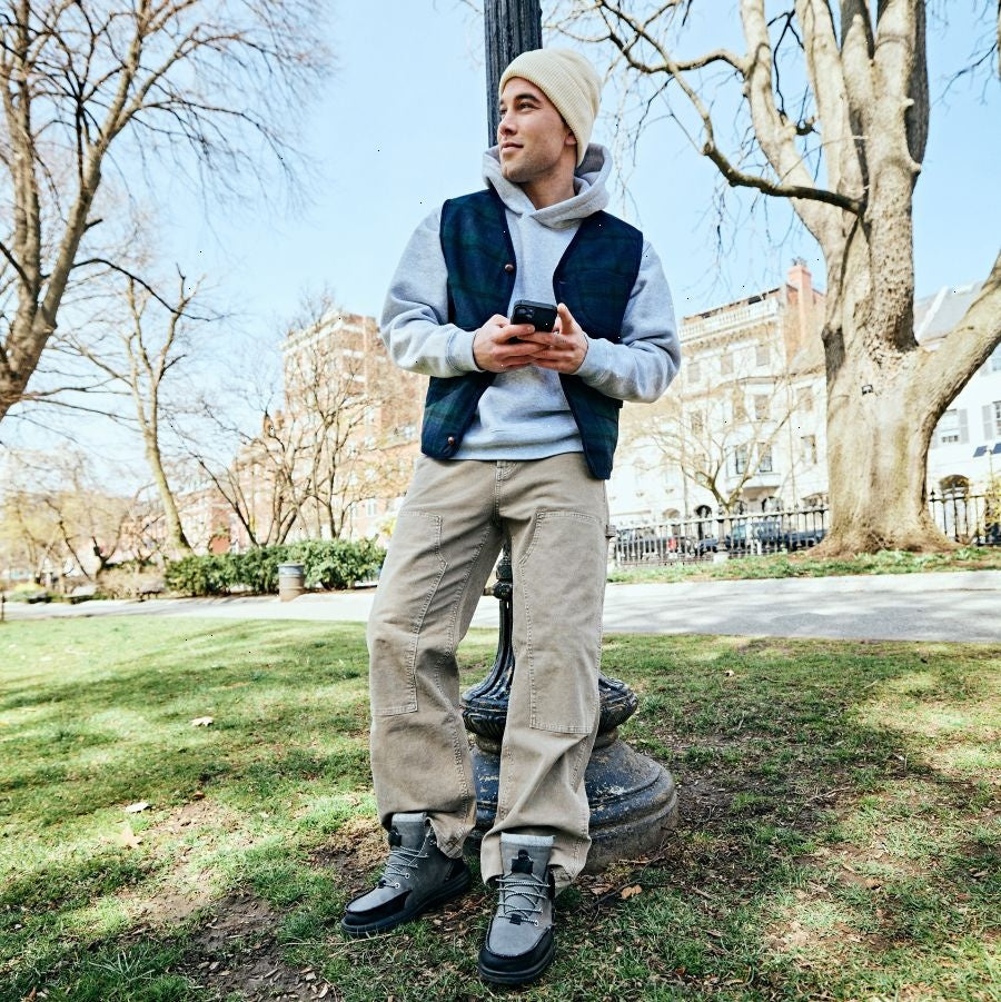 The Bradley Tumbled Classic is a far cry from the stiff, heavy, blocky boots of the past. Those were your grandpa's boots. These are rugged yet soft, with a lightweight and flexible feel. With stretchy laces that don't need tying and a wool blend lining, they're cozy, warm and wonderfully easy to get on.