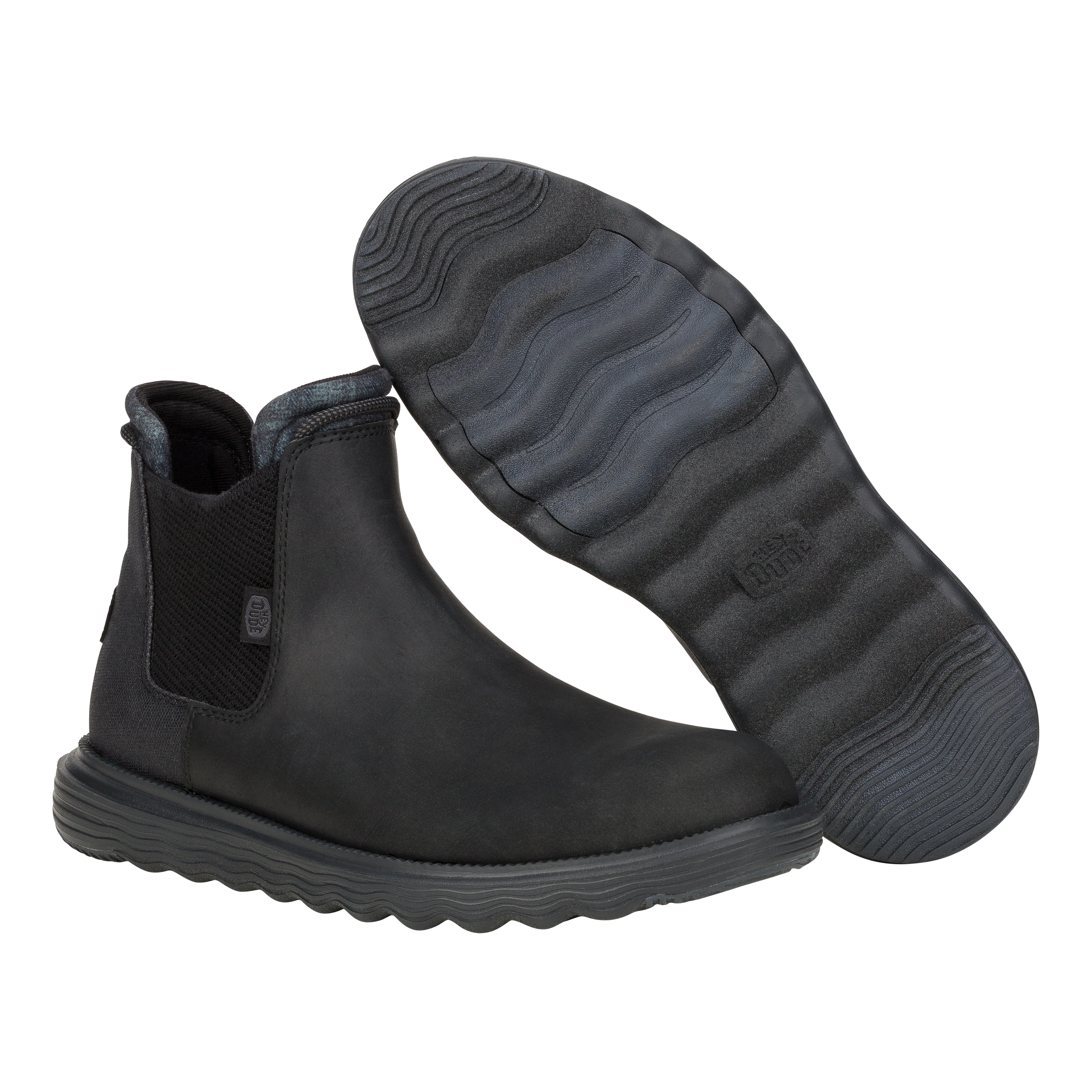 A classy boot for a classy dude. Branson Classic is in it to win it this season with a faux leather water repellent upper, lightweight flex outsole and rubber pods for added traction. Slip into classic HEYDUDE™ comfort and style.